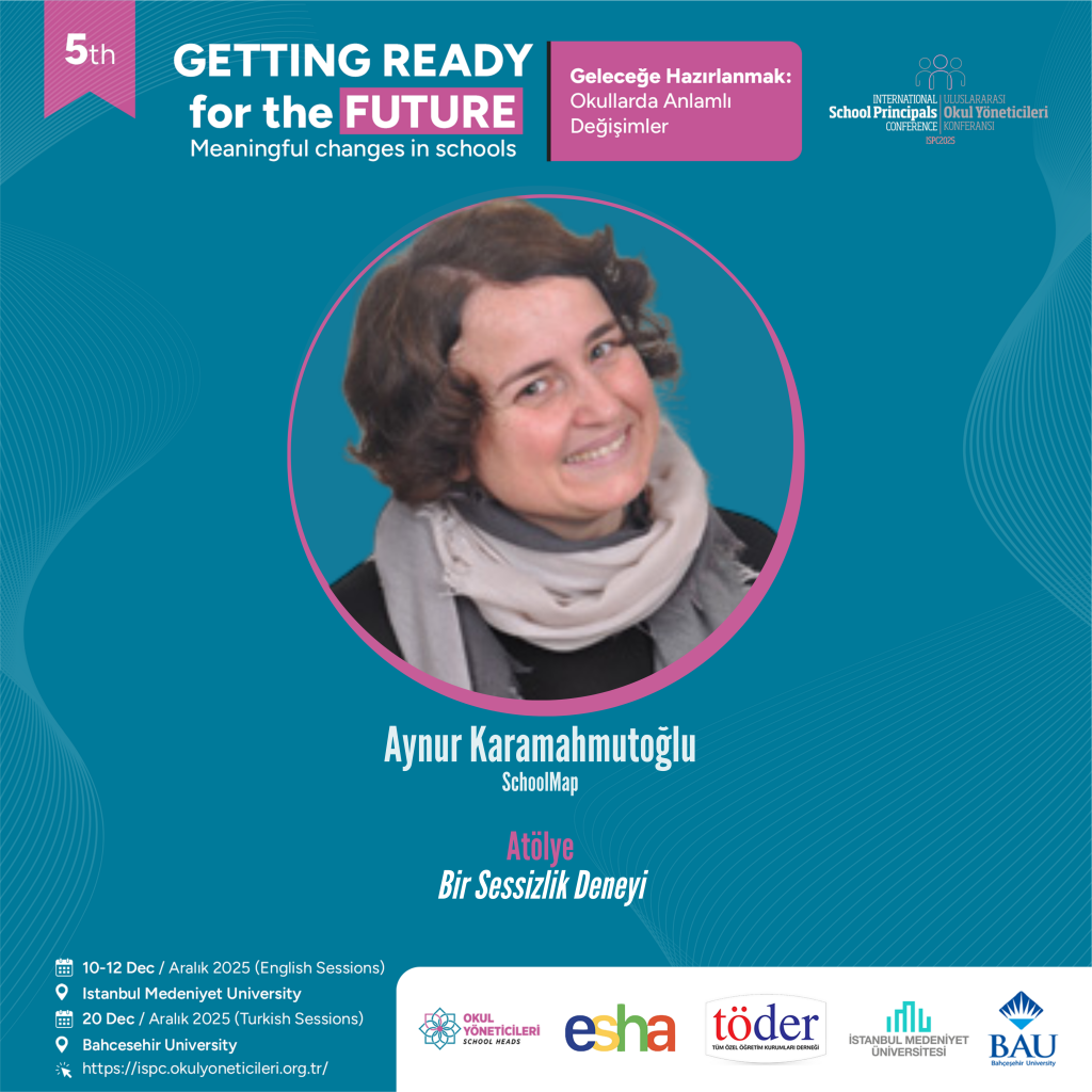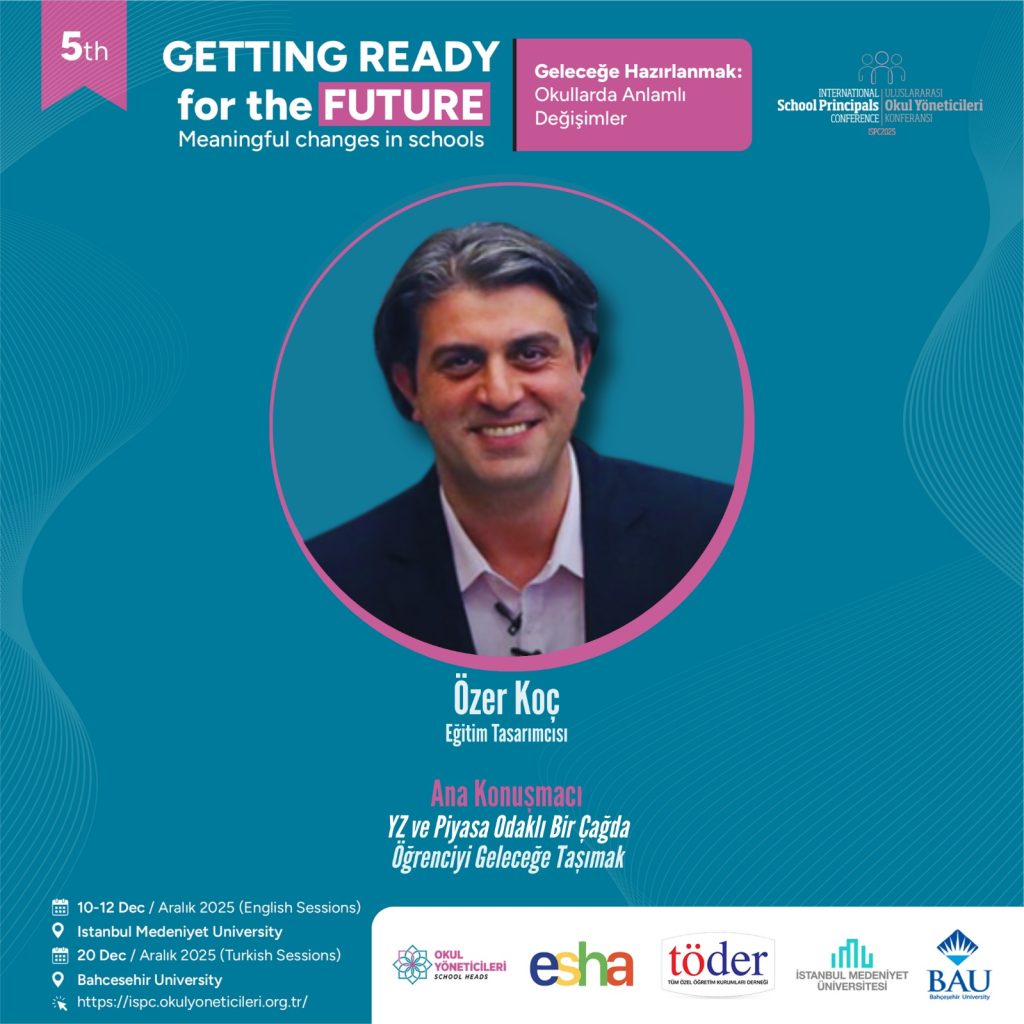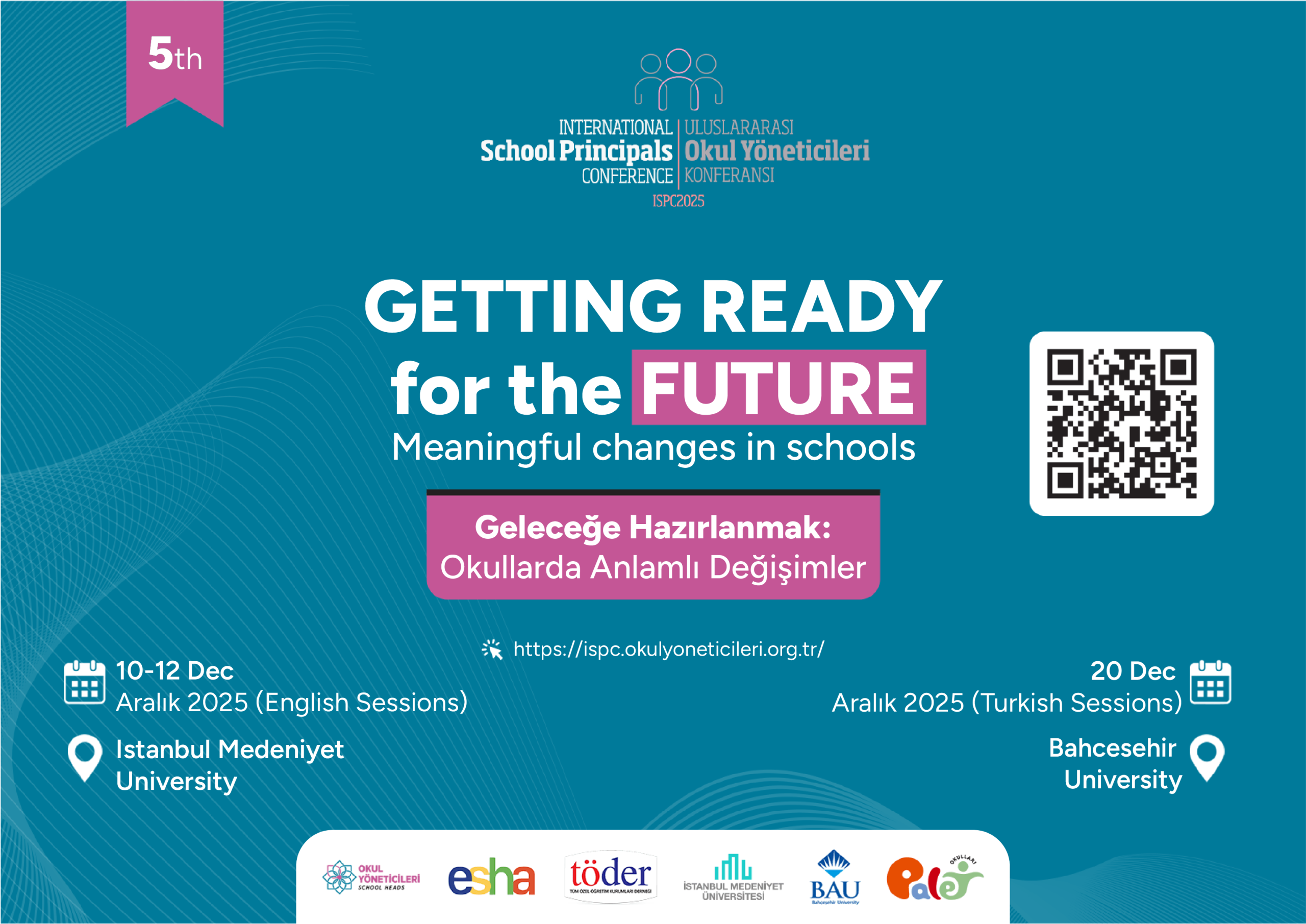 ISPC2025 5th International School Principals Conference 10-11-12 Dec 2025, Istanbul Medeniyet Univesity 20 Dec 2025, İstanbul Bahçeşehir University Main Theme Getting Ready For the Future: Meaningful Changes in Schools Remaining time for ISPC2025 Submit Inspiring Practices ISPC2025 Program Register Now Keynotes Panel Online Webinars Workshops (English - InPerson) Rountable (English) Workshops (Turkish - InPerson)