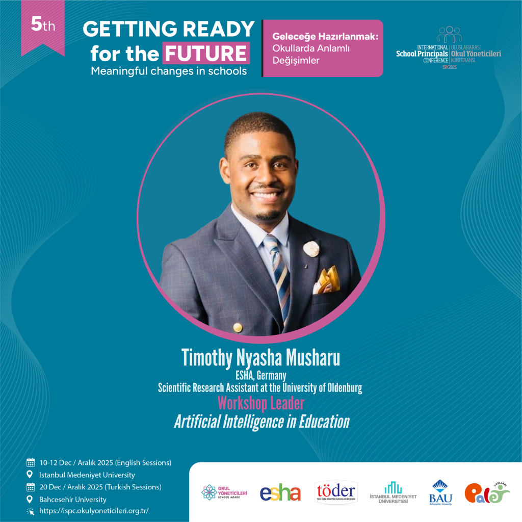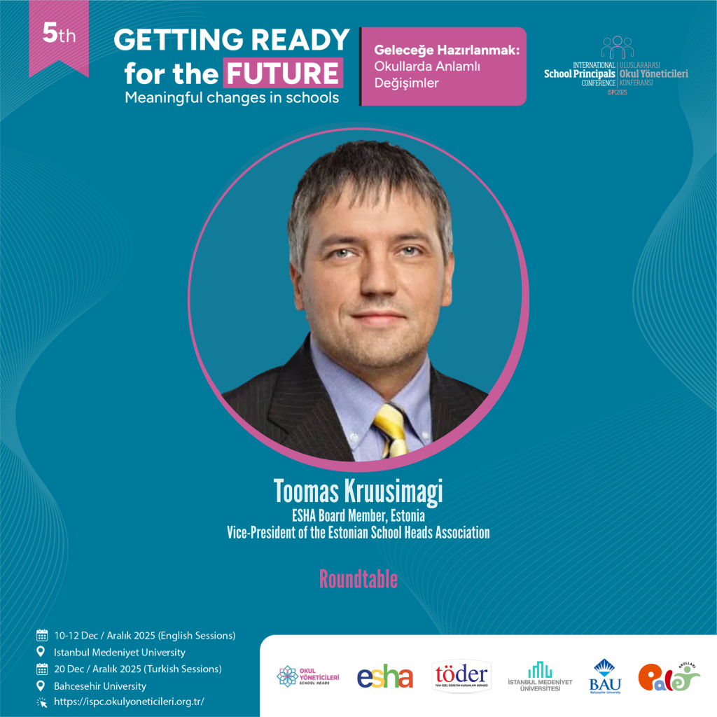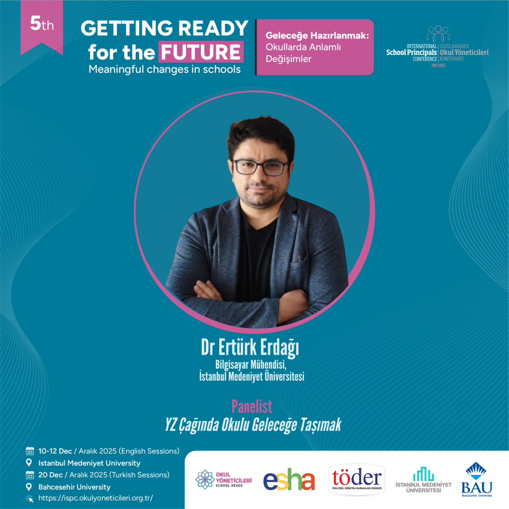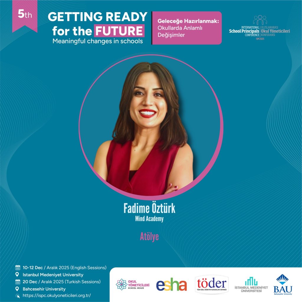 ISPC2025 5th International School Principals Conference 10-11-12 Dec 2025, Istanbul Medeniyet Univesity 20 Dec 2025, İstanbul Bahçeşehir University Main Theme Getting Ready For the Future: Meaningful Changes in Schools Remaining time for ISPC2025 Submit Inspiring Practices ISPC2025 Program Register Now Keynotes Panel Online Webinars Workshops (English - InPerson) Rountable (English) Workshops (Turkish - InPerson)