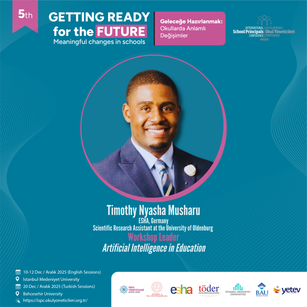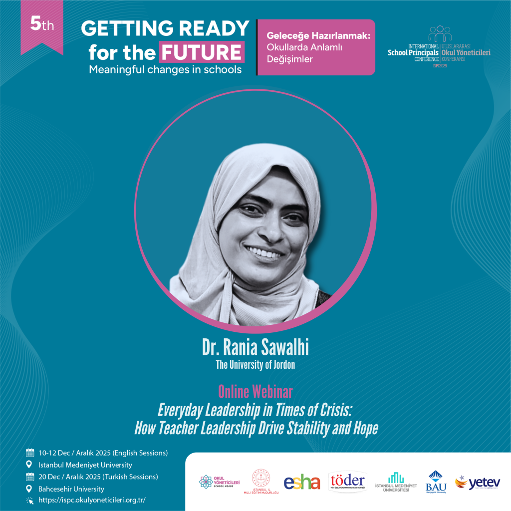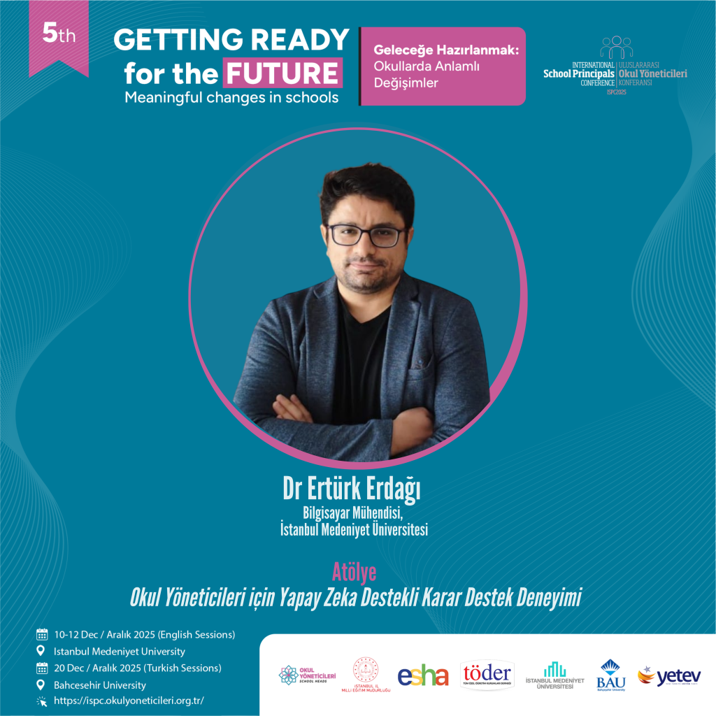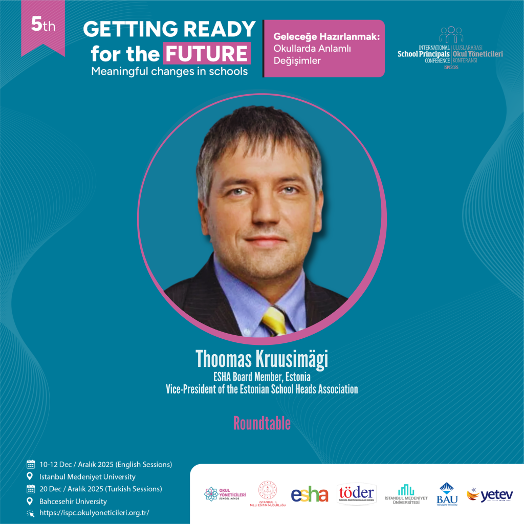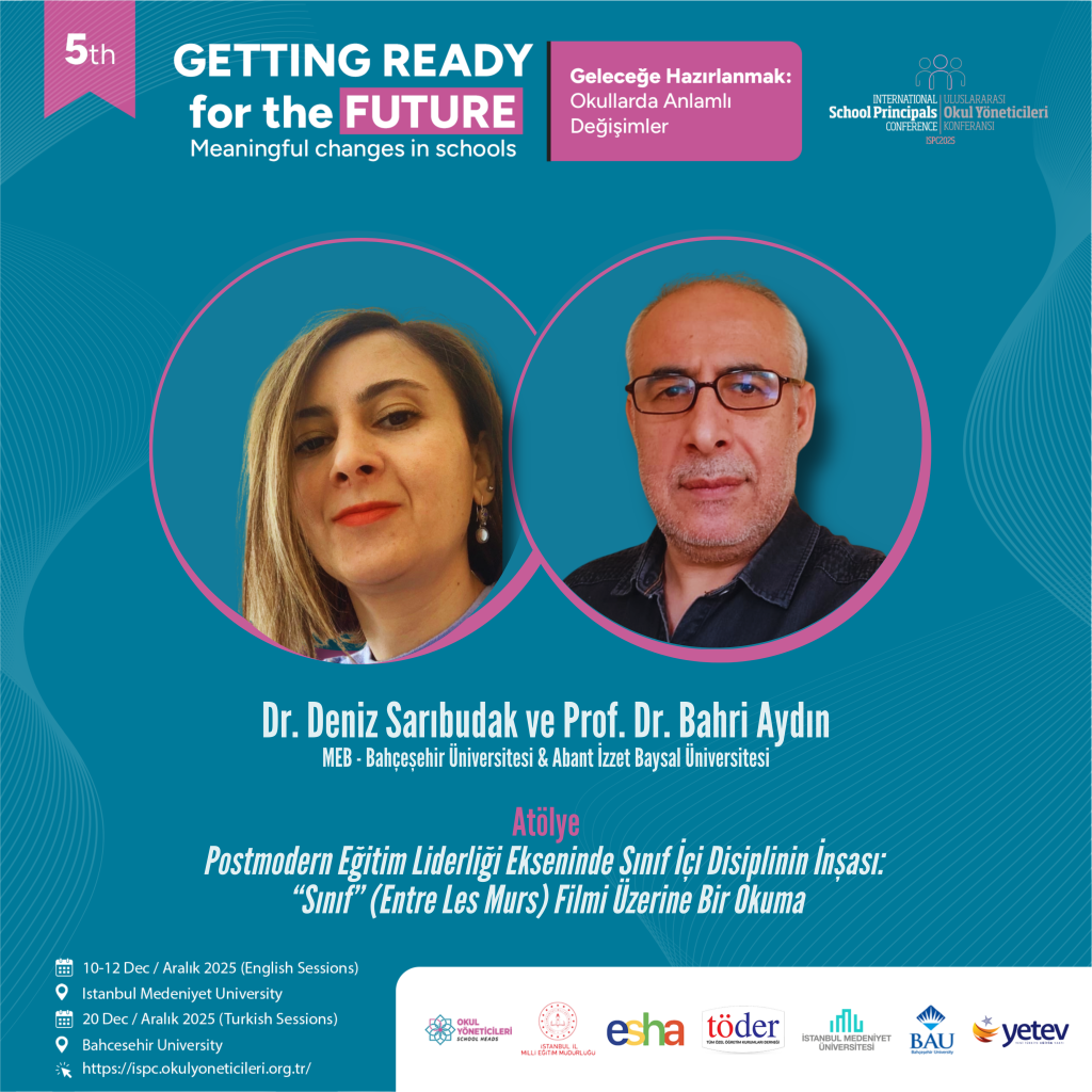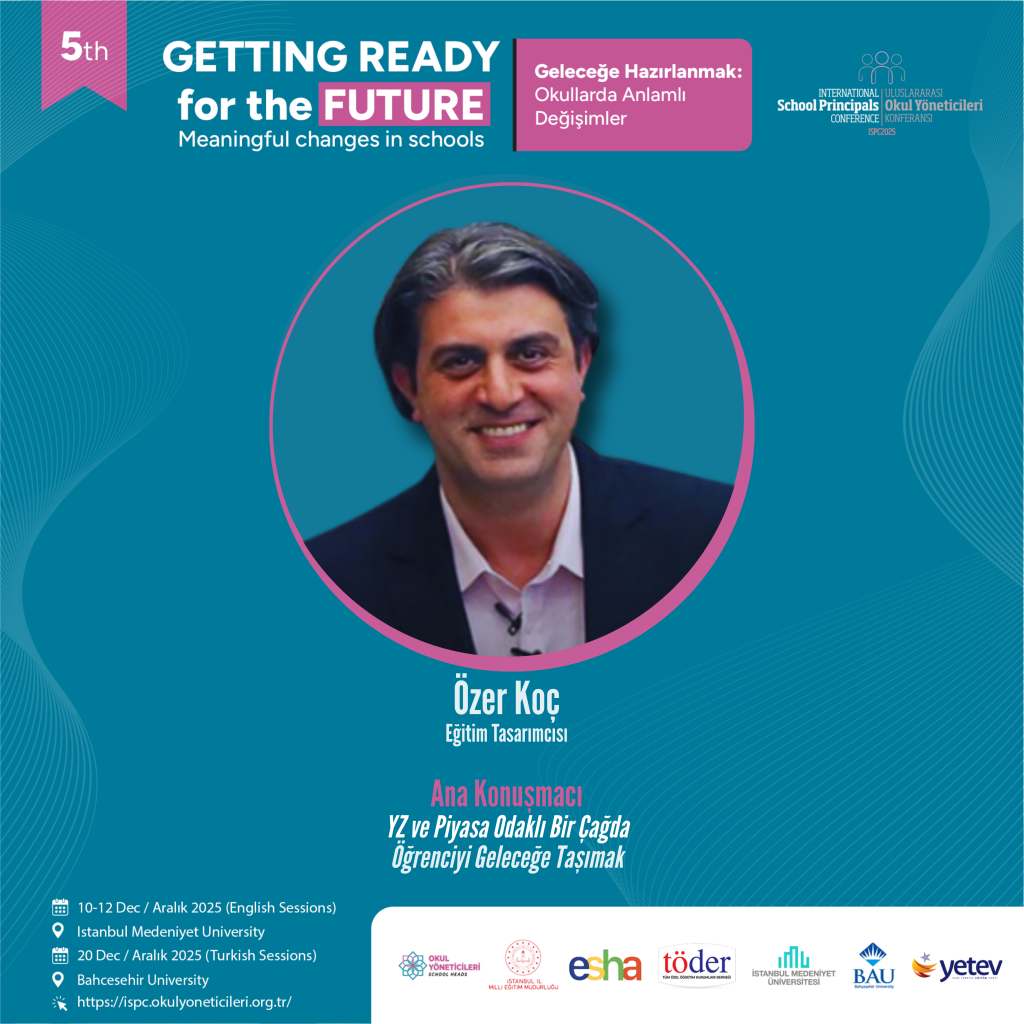 ISPC2025 5th International School Principals Conference 10-11-12 Dec 2025, Istanbul Medeniyet Univesity 20 Dec 2025, İstanbul Bahçeşehir University Main Theme Getting Ready For the Future: Meaningful Changes in Schools Remaining time for ISPC2025 Submit Inspiring Practices ISPC2025 Program Register Now ISPC2025 PROGRAM Keynotes Panel Online Webinars Workshops (English - InPerson) Rountable (English) Workshops (Turkish - InPerson)